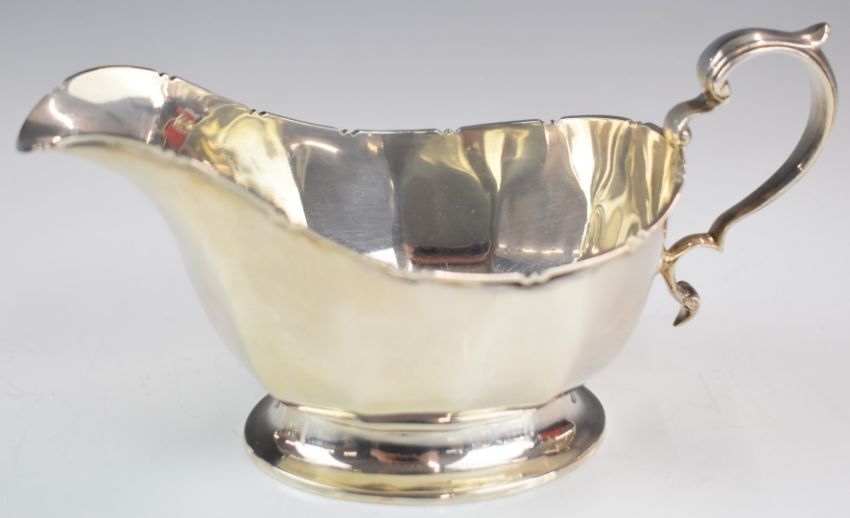 Mappin & Webb hallmarked silver sauce or gravy boat, Birmingham 1939, length 16cm, weight 171g