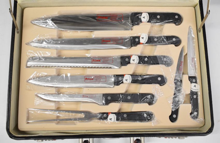 Cased set of Prima knives and accessories