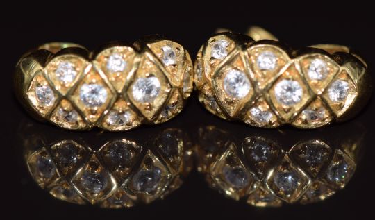 A pair of 18ct gold earrings set with cubic zirconia, 6.4g
