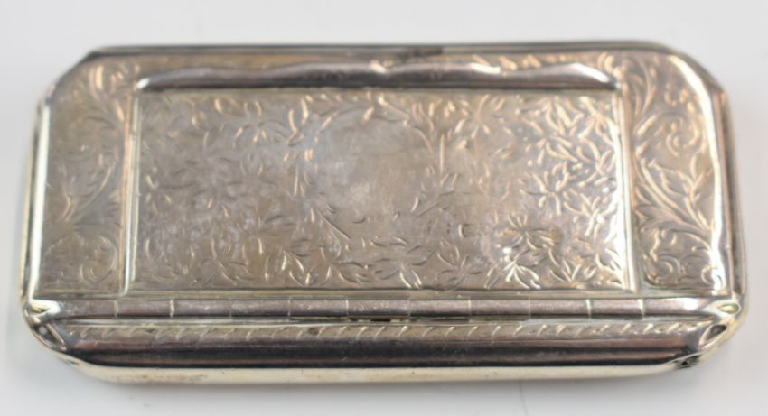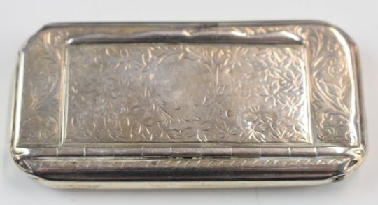 Two unmarked white metal snuff or similar cases or boxes, length of longer 8.5cm, weight of both 91g