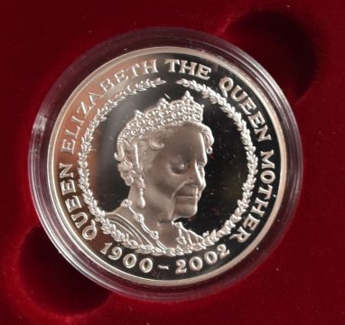 Four Royal Mint silver proof coins comprising a 1995 WW2 piedfort £2, a 1997 piedfort 50p, a Golden Jubilee crown and a 2002 Queen Mother Memorial crown, all cased with certificates