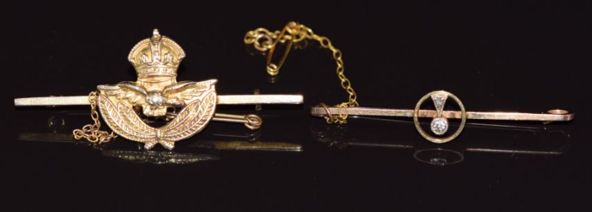 A 9ct gold brooch set with diamonds and a 9ct gold RAF brooch, 4.8g 4.6x1.9cm