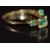 An 18k gold ring set with an emerald cut emerald and two round cut emeralds, 2.1g, size P