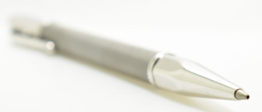 Caran d'Ache Varius Ivanhoe or similar propelling pencil with woven stainless steel shaft, in wooden box with guarantee.