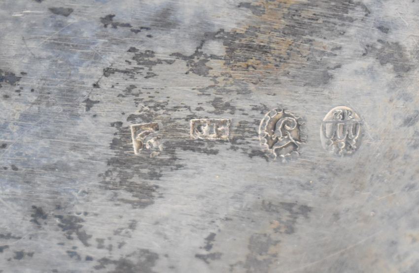 Danish silver and silver plate comprising silver tea strainer and stand with early 20thC silver marks, length 17cm, and a silver vase marked 925 sterling Denmark, weight of all items 114g all in, silver plated teapot, silver plated tea caddy and a pair of candlesticks marked 835S