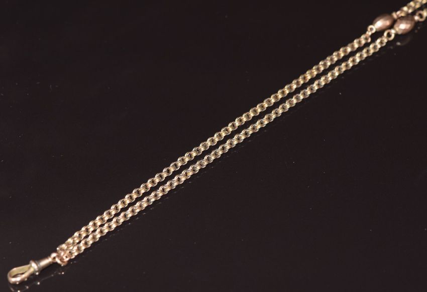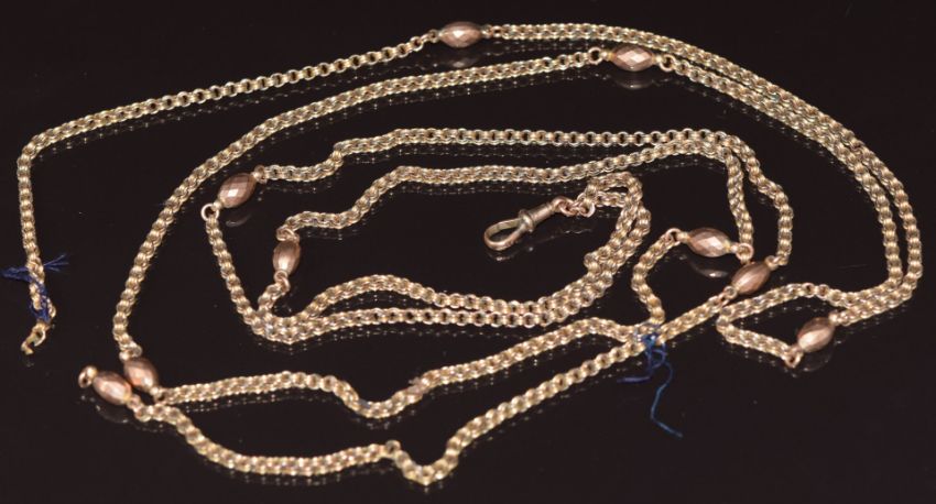 Victorian 9ct gold guard chain made up of circular and faceted links, 18.5g