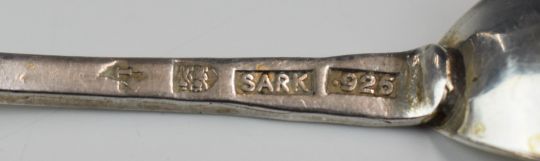 Sark Channel Islands provincial hallmarked silver salt or mustard spoon, marked 925, Sark and with coat of arms, length 98cm, weight 7g