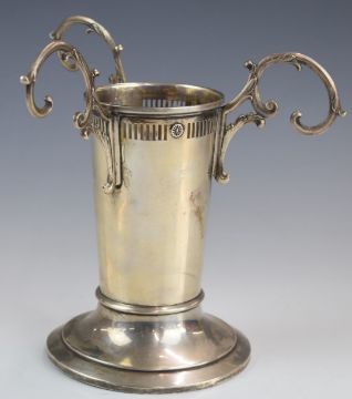 American silver epergne or centrepiece with three hanging loops surrounding a central vase holder, marked to base sterling 803, height 18cm, weight 241g