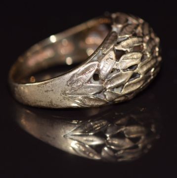 A 9ct gold ring with pierced and textured design, 4.2g, size J