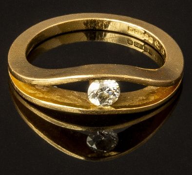 Tiffany & Co 18ct gold ring set with a diamond of approximately 0.2ct, 4.1g, size M