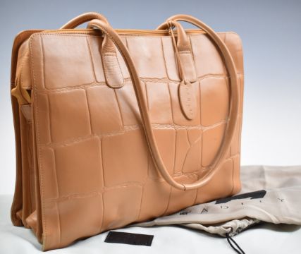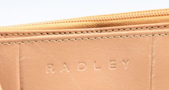 Four large Radley handbags, three with original dust bags, includes striped, faux croc and knotted clasp examples