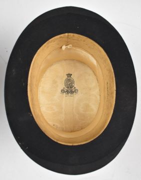 Silk top hat by Battersby and Co, London, in leather case with three vintage hat stretchers