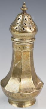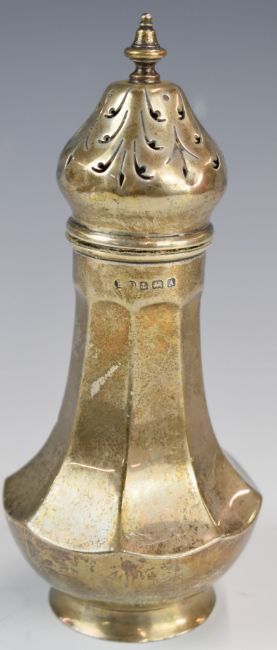 George V hallmarked silver sugar sifter of octagonal form, Birmingham 1925, maker's mark rubbed but possibly Ernest Druiff & Co, height 16cm, weight 143g