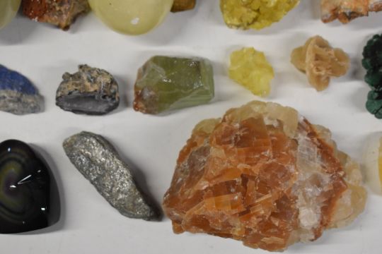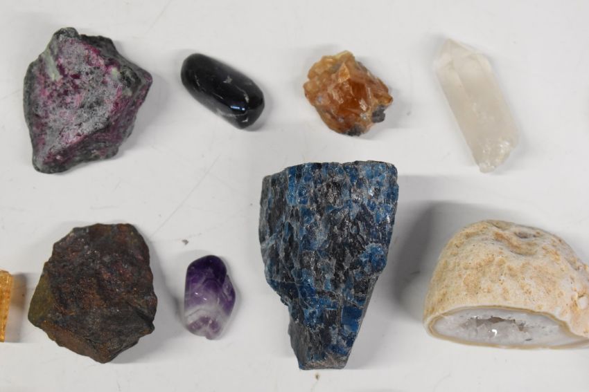 Mineral samples, geodes etc including lapis lazuli, agate and Blue John