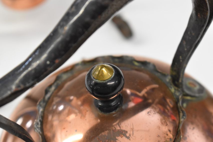 Arts & Crafts copper and brass spirit kettle in the manner of W A S Benson, height 34cm