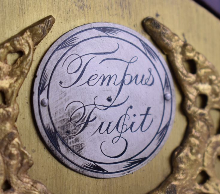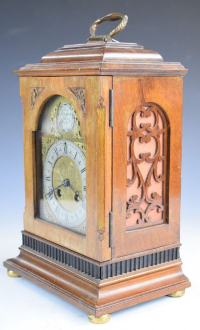 19thC or early 20thC bracket clock with gilt dial and silvered chapter ring, the 8 day French movement striking on a gong, height 33cm