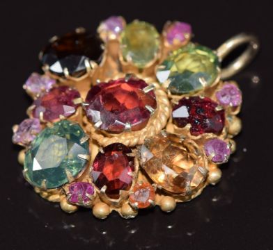A silver gilt pendant set with rubies, tourmaline, citrine, garnet, etc