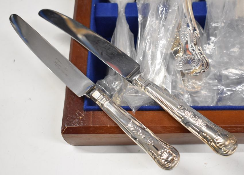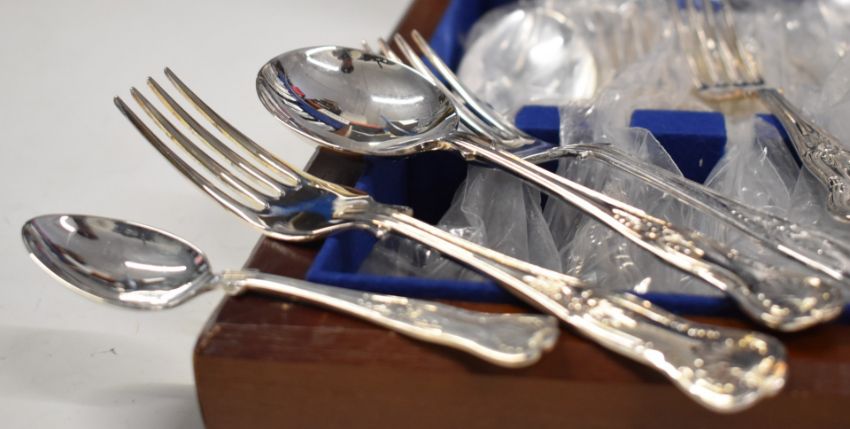 Six place setting canteen of silver plated King's pattern cutlery, width of canteen 41cm