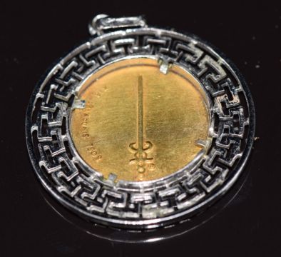 Lalaouni Greek designer silver pendant set with an 18k gold cameo depicting a solider, 9.5g