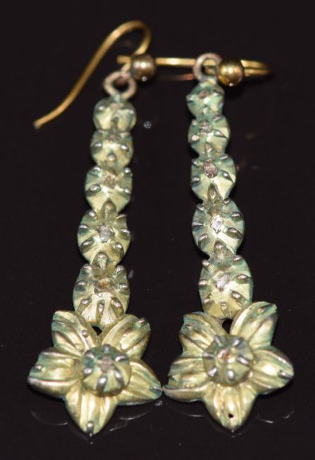 A pair of Georgian earrings set with diamonds 6.4g 3.8x1.2cm