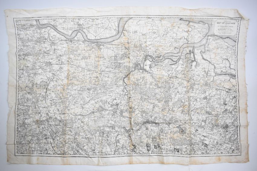 19th / 20thC Ordnance Map of Chatham and Surrounding Country by Woolley and Co, printed on linen, 56 x 87cm