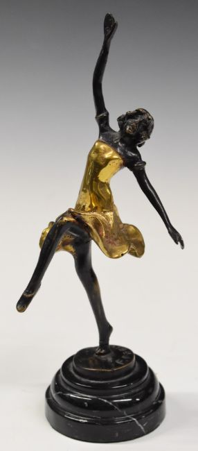 Bronze figure of an Art Deco dancer raised on a circular stepped marble plinth, after Ferdinand Preiss, height 26cm