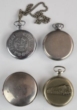 Three various keyless winding pocket watches comprising Ingersoll Triumph, Sekonda and a Russian example.