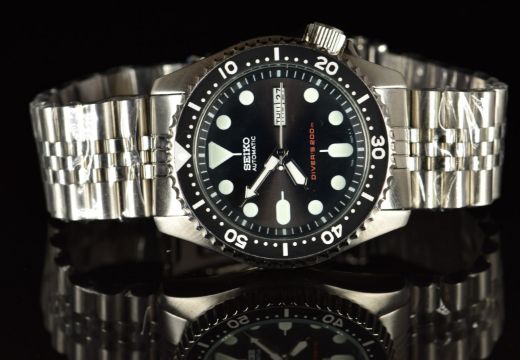 Seiko gentleman's diver's automatic wristwatch ref. 7S26-0020 with day and date aperture, luminous hands and hour markers, black dial and bezel, stainless steel case and signed calibre 7S26 movement, on stainless steel bracelet, case diameter 42mm, serial number 8D0675.