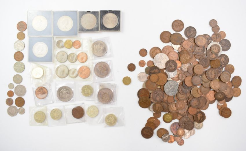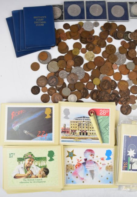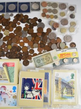 A collection of UK coinage with some modern crowns, single metal £2 including Tercentenary, some overseas etc, together with a quantity of PHQ cards