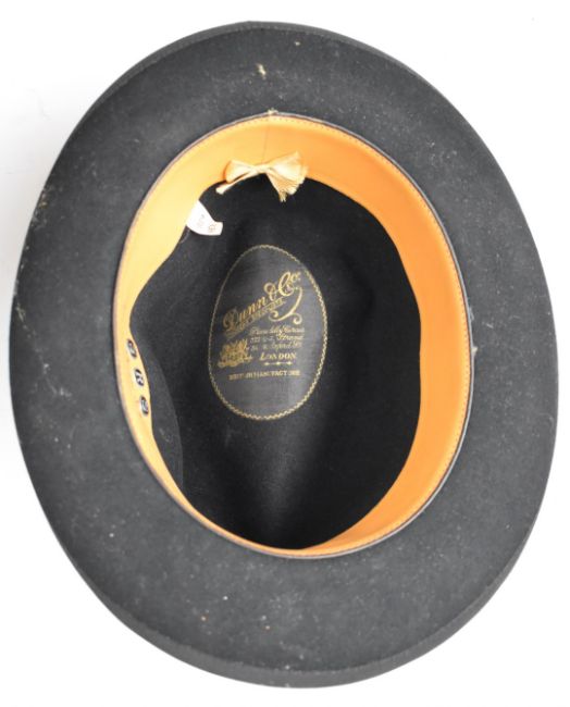 Three tin hat boxes including top hats, one with burgundy felt interior (exterior silk missing)