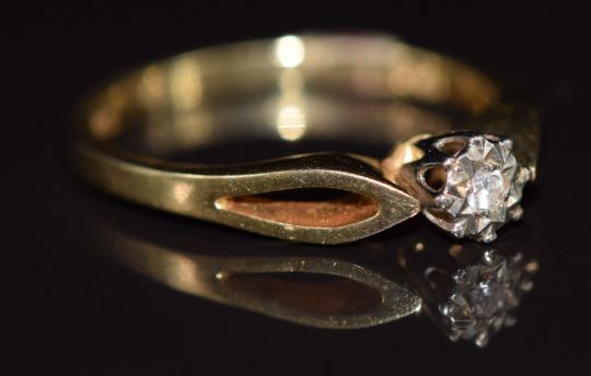 An 18ct gold ring set with a diamond in an illusion setting, 3.2g, size N