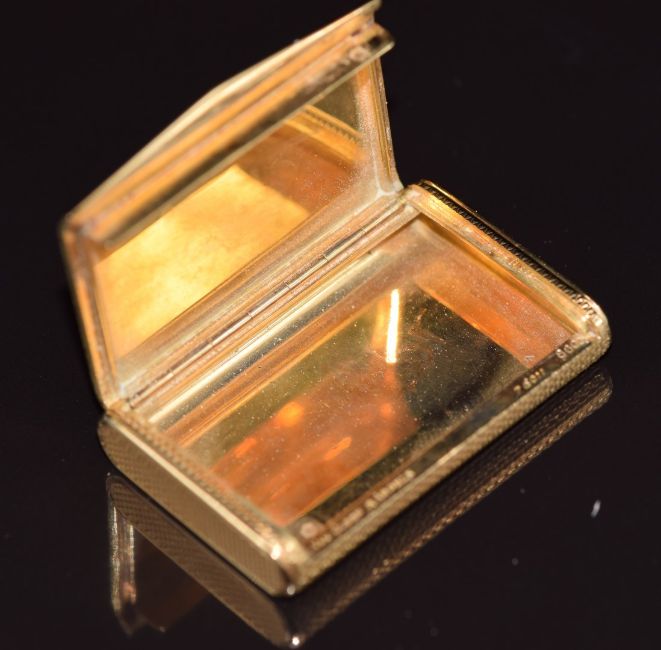 Van Cleef & Arpels 18ct gold engine turned pill case, in original box, 20.4g