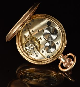 Syren gold plated keyless winding open faced pocket watch with inset subsidiary seconds dial, blued hands, black Roman numerals, white dial and signed movement, case diameter 48mm, serial number 598747, in fitted box.