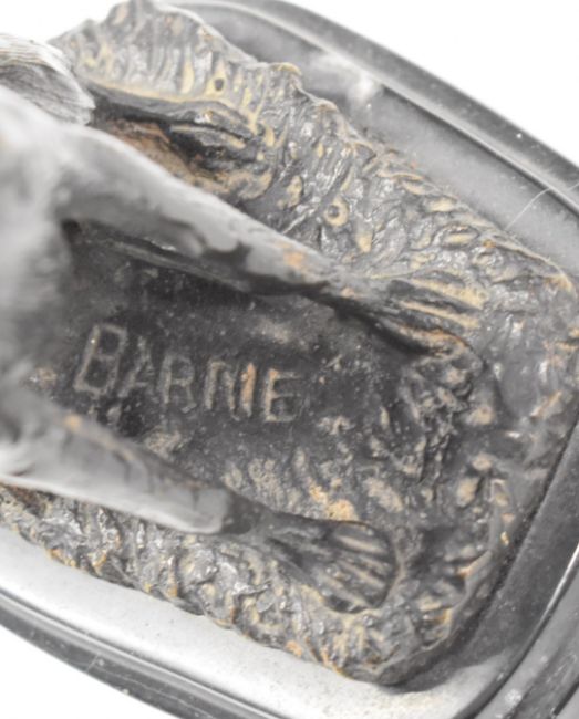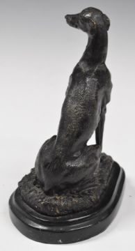Cast bronze figure of a greyhound / lurcher impressed 'Barrie' to base, height 20cm