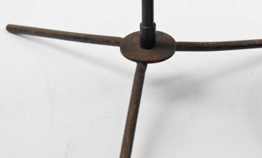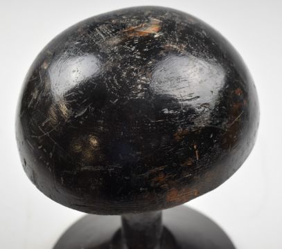 Turned wood ebonised vintage shop display hat stand, height 31cm together with an adjustable wire example