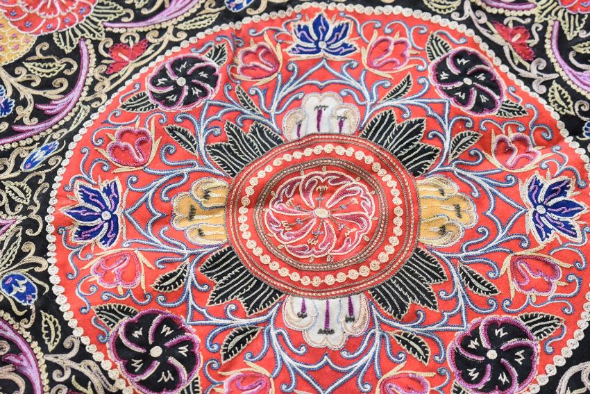 A 19thC Welsh embroidery wall hanging / blanket from the Morgan family of Hafod Fawr, Pontypridd, 192 x 180cm