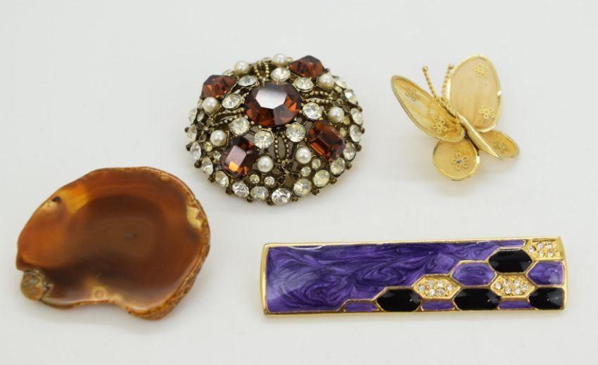 A collection of vintage brooches including Sphinx, paste, Exquisite, etc