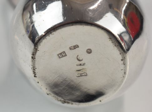 Russian silver jug of bulbous form, with 84 grade silver and St. Petersburg assay marks, height 12cm, weight 121g