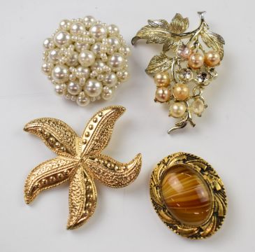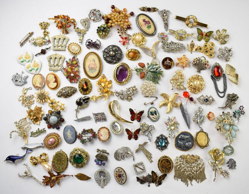 A collection of vintage brooches including Hollywood, Exquisite, paste, silver, etc