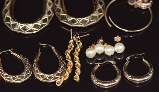 Fifteen pairs of 9ct gold earrings including hoop, rope twist etc and two single 9ct gold earrings, 18g
