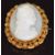 A late Victorian yellow metal brooch in the form of shells and spheres set with a cameo