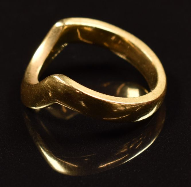 An 18ct gold wedding band / ring made to fit around an engagement ring, 5.1g size H