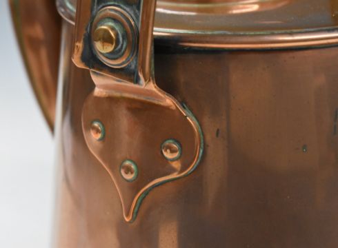 Buckby copper garden watering or canal boat can, indistinctly stamped with maker's mark to top, height 37cm