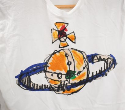 Vivienne Westwood black brushstroke scribbled orb t-shirt, unworn with tags, size S and a similar  Vivienne Westwood Man t-shirt in white, size M