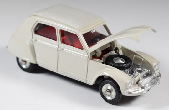 Dinky Toys dicast model Citroen Dyane Spanish variant with grey body, red interiors and silver hubs, 1413, in original box.