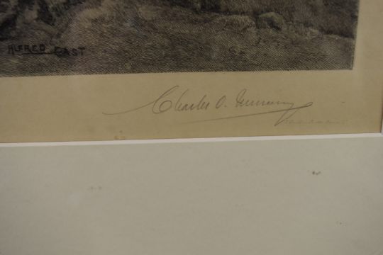 Sir Alfred East RA RBA (1844-1913) etching The Millers Meadow, signed by East and also Charles Oliver Murray, 48 x 58cm, in gilt frame