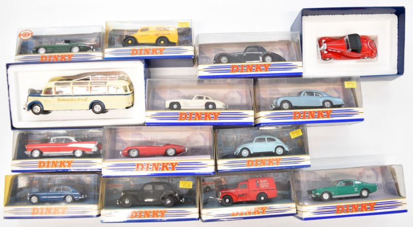 Fourteen Matchbox 'The Dinky Collection' 1:43 scale diecast model cars to include Chevrolet Bel Air 1957 DY-2, 1950 Ford V8 Pilot DY-5 and 1955 Mercedes Benz 300SL Gullwing DY-12, all in original boxes.