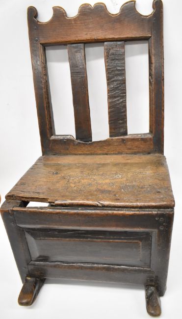 Antique oak rocking chair with pegged joints and compartment below