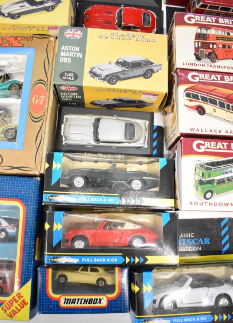 A collection of diecast model cars to include Matchbox, Maisto, Burago and Atlas Editions, all in original boxes.