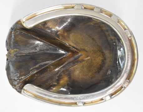 National Hunt horseracing taxidermy interest hallmarked silver mounted hoof inkwell with impressed script 'Eremon Winner of the Grand National and Lancashire Steeplechase 1907', the inkwell hallmarked London 1911 with indistinct maker's mark, height 9cm. Previously the property of Alfred Newey, Eremon's jockey and later a racehorse trainer and consigned for auction by a direct descendant.Together with an album of ephemera relating to Alf Newey's career as a jockey and trainer including newspaper cuttings and photographs including action shots (possibly Cheltenham with Cotswold escarpment in the background), some entitled Sandown, Hurst Park and Aintree, most 1920/30s, a copy of Heroes and Heroines of The Grand National by Finch Mason with inscription in pencil 'To Alfred Newey, One of the heroes from Stanley Howard' and Newey's 6x Helinox binoculars in leather case by Goerz, Berlin